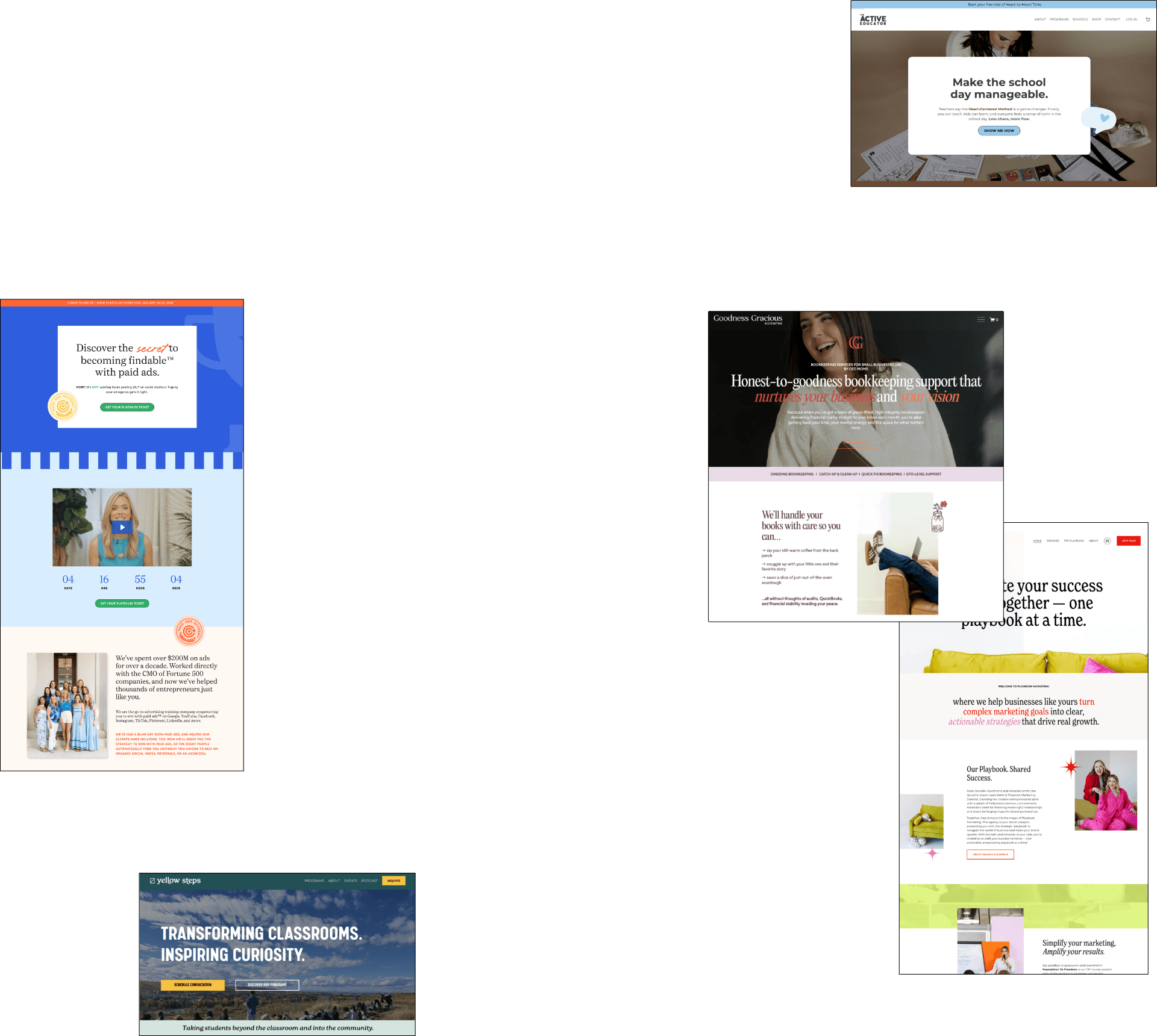 One long-term client started with a single program. Today, she runs multiple offers, has expanded into district-level partnerships, and operates as a six-figure business. I’ve supported her through every iteration — sales pages, funnels, website evolutions, brand refinements — building a foundation that could grow with her.