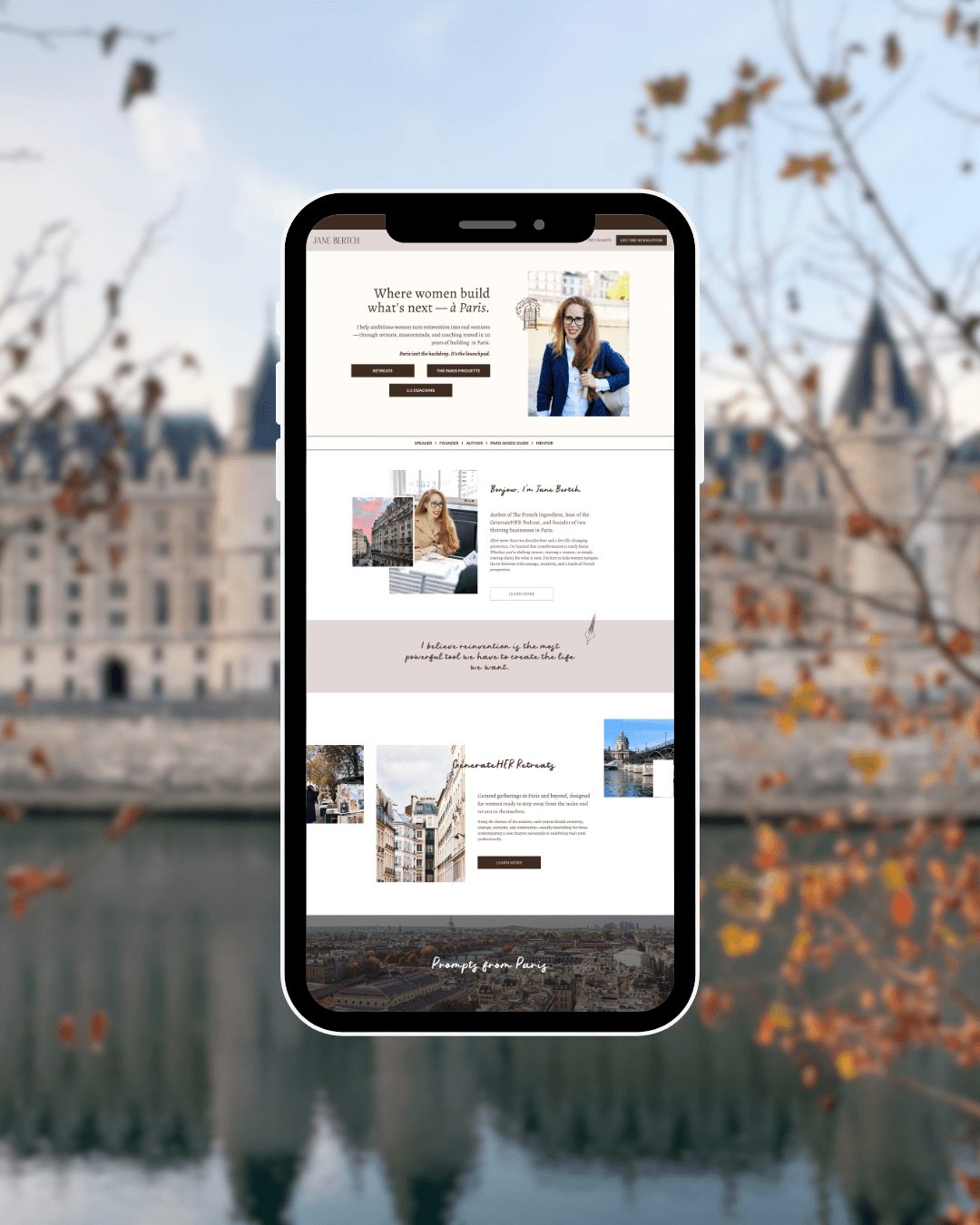 Jane Bertch is a Paris-based author, entrepreneur, and speaker — founder of La Cuisine Paris, host of the GenerateHER Podcast, and author of The French Ingredient. Her work centers on helping women navigate transformation, reinvention, and growth. And her brand needed to hold all of it: the book, the podcast, the retreats, the speaking, the coaching — without any of it feeling scattered.