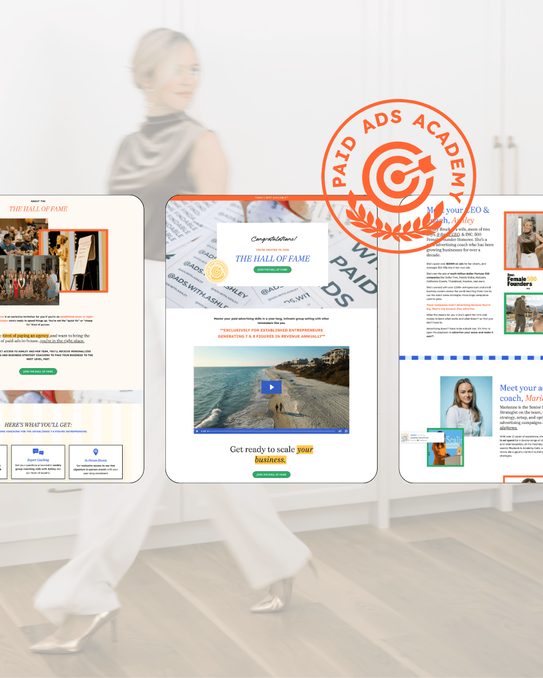 Ashley Brock runs a high-volume, funnel-heavy business teaching paid ads — and when she refreshed her brand, the Kajabi sales ecosystem that powered everything suddenly felt like it belonged to an earlier version of the business. The pages were functional. They just didn't reflect the level of the brand anymore.